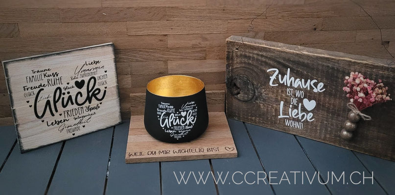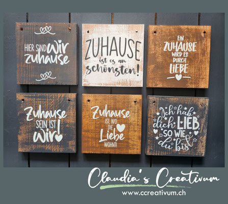 Die Sprüche sind ideal für Schilder in der Grösse 10 x 10 cm.